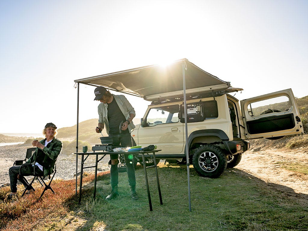 Securely mount the Front Runner Easy-Out Awning, as well as other popular awning brands, to the Slimline II Roof Rack. This no drill, off-road tough mounting solution offers a refined alternative to the ugly and bulky galvanized L brackets.